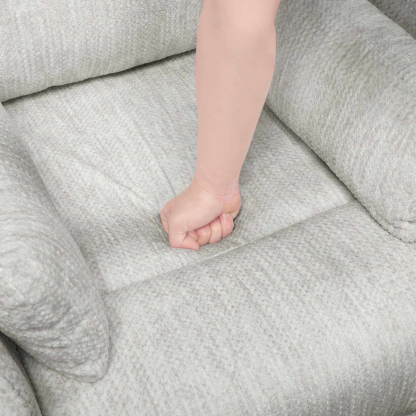 Experience the perfect blend of modern convenience and plush comfort with this power reclining chair. Upholstered in a soft, beige chenille fabric, this recliner offers a cozy and inviting feel that complements a variety of decor styles. With the one-touch power control, you can effortlessly adjust your position to recline, sit up, or anywhere i...