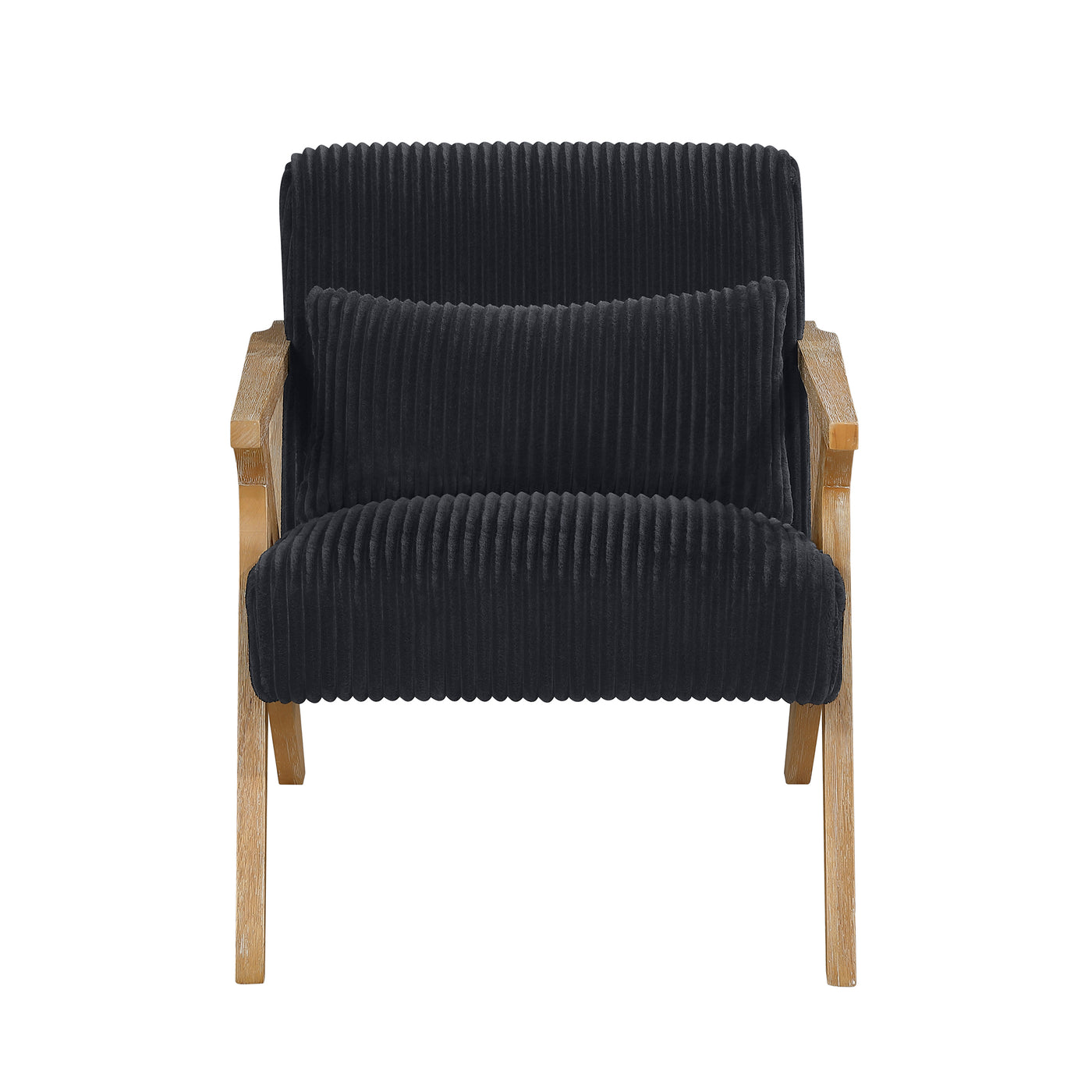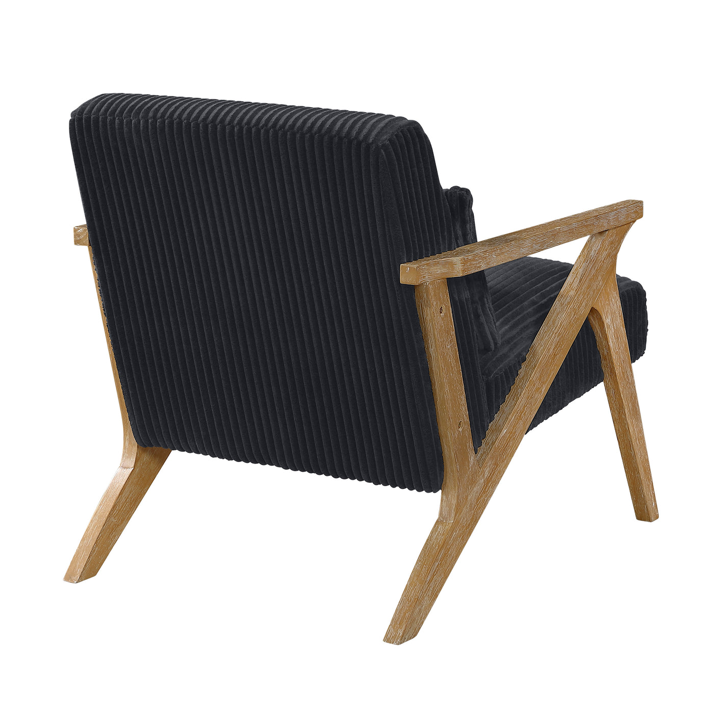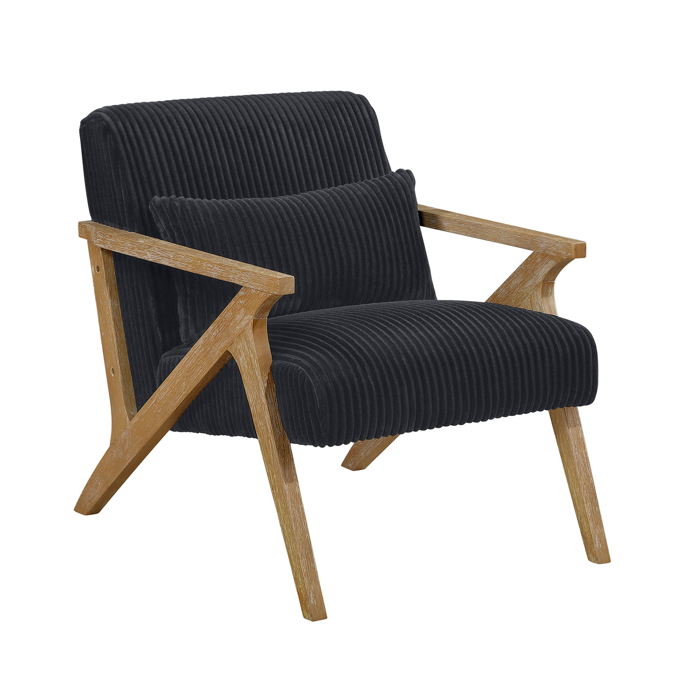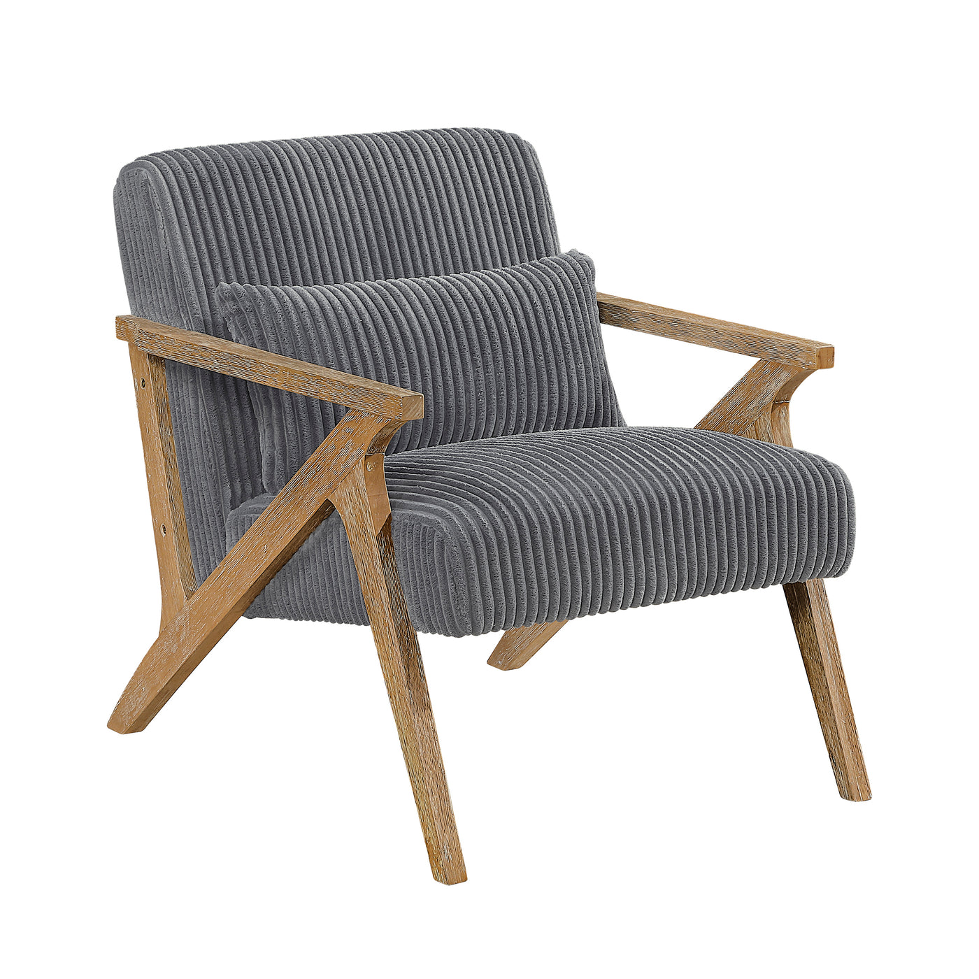 Add a touch of Scandinavian-inspired design and cozy comfort to your living space with this stylish accent chair. Crafted with a solid rubberwood frame in a rich brown finish, the chair features a striking, open-frame silhouette that exudes mid-century modern charm. The wide seat and large back cushion are upholstered in a soft, durable chenille...