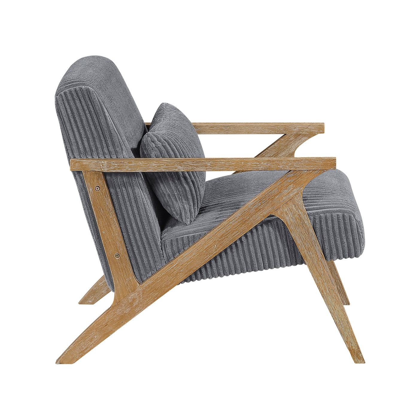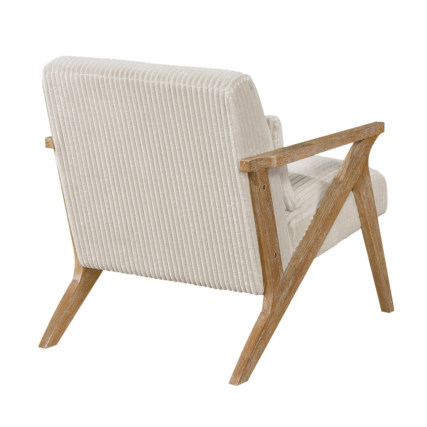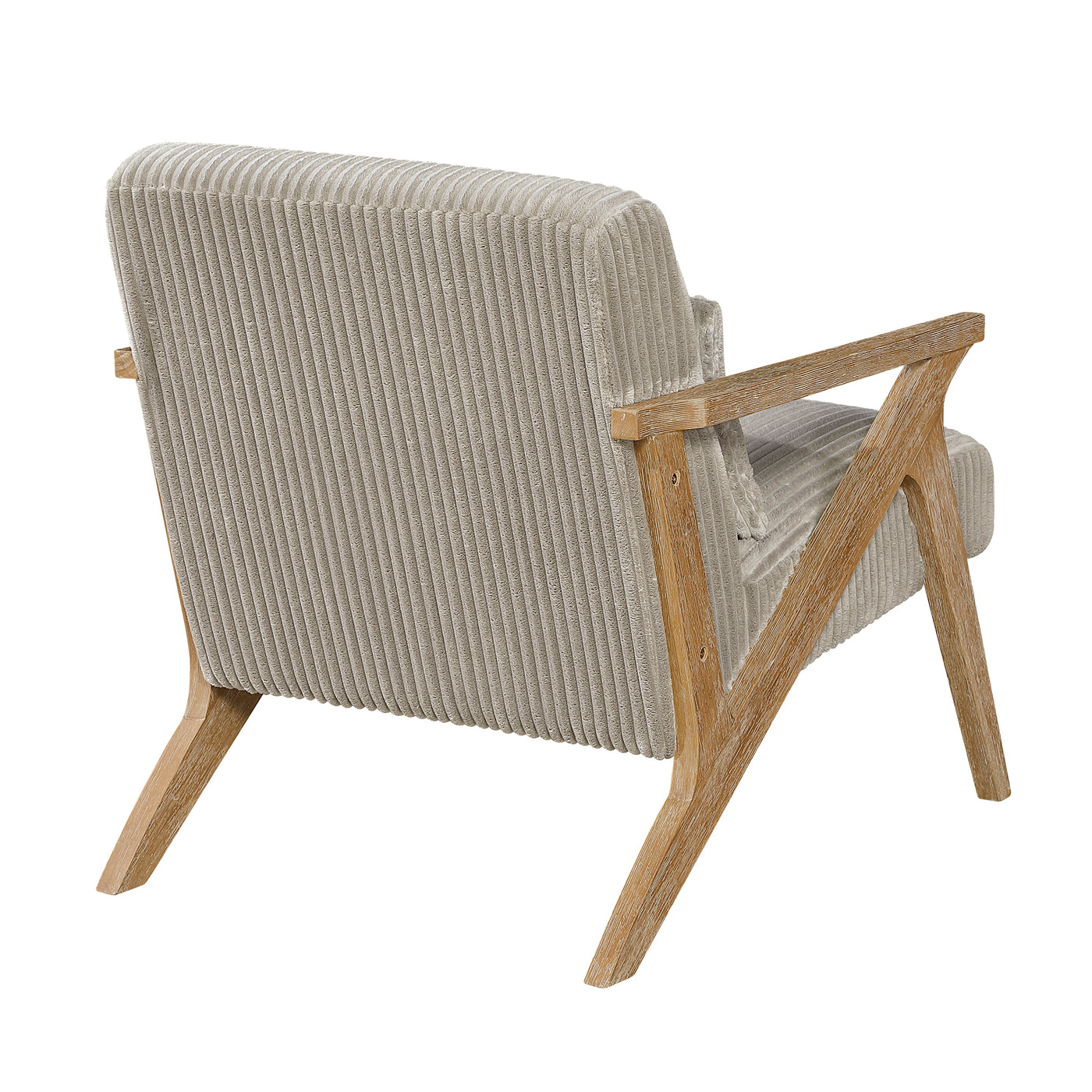 Add a touch of Scandinavian-inspired design and cozy comfort to your living space with this stylish accent chair. Crafted with a solid rubberwood frame in a rich brown finish, the chair features a striking, open-frame silhouette that exudes mid-century modern charm. The wide seat and large back cushion are upholstered in a soft, durable chenille...