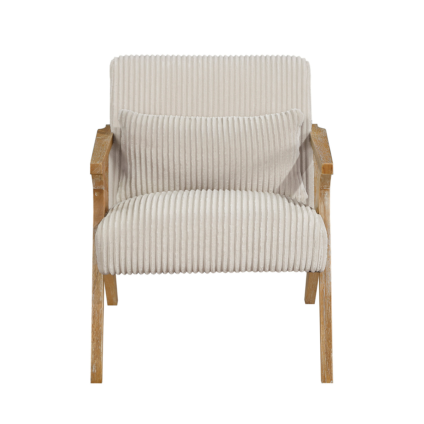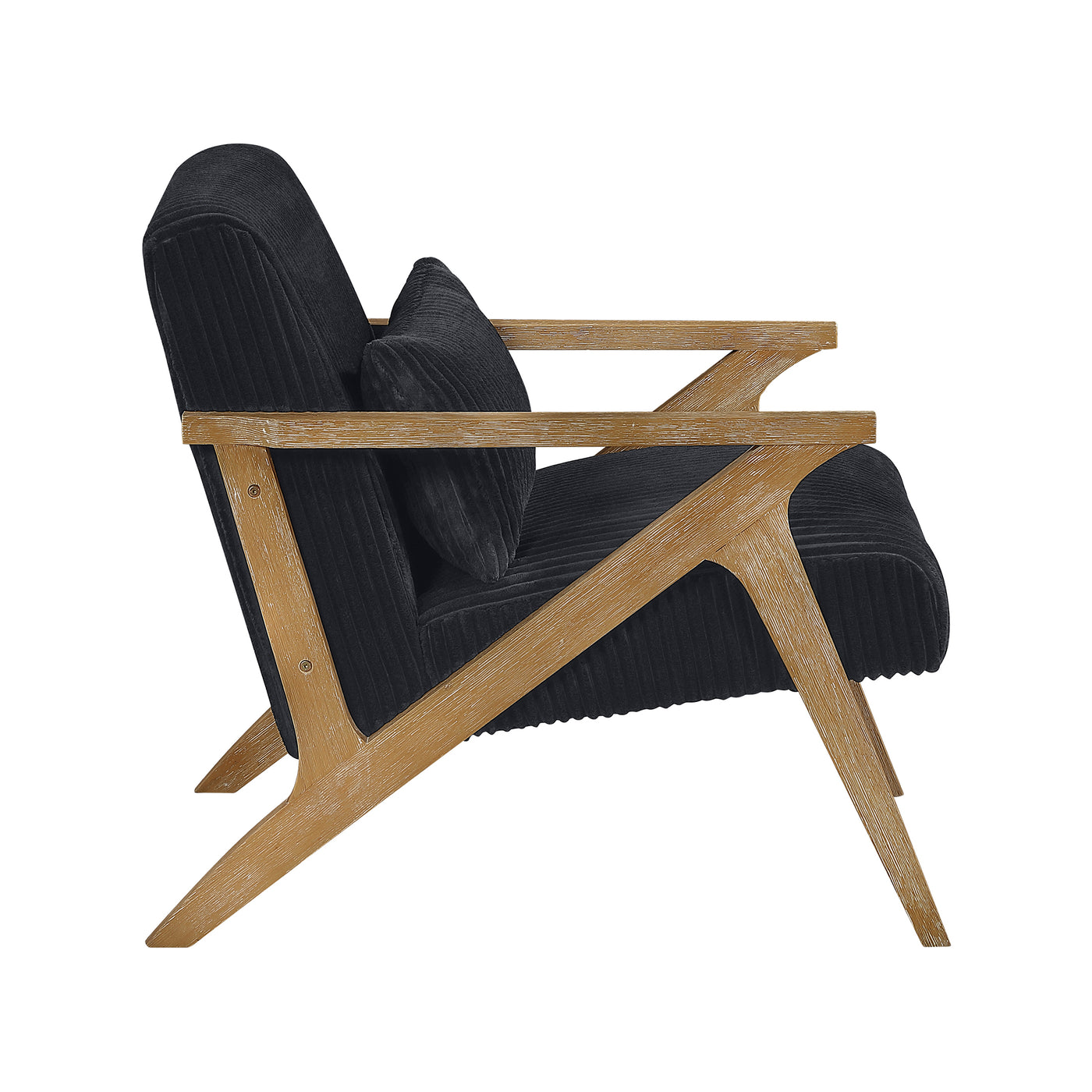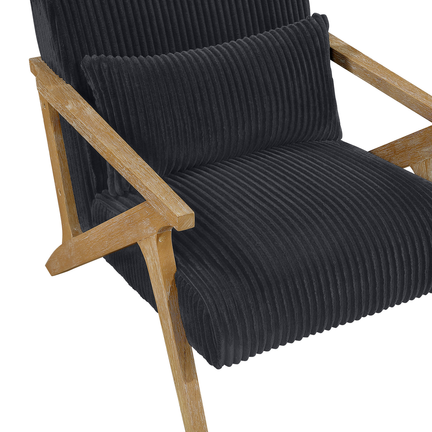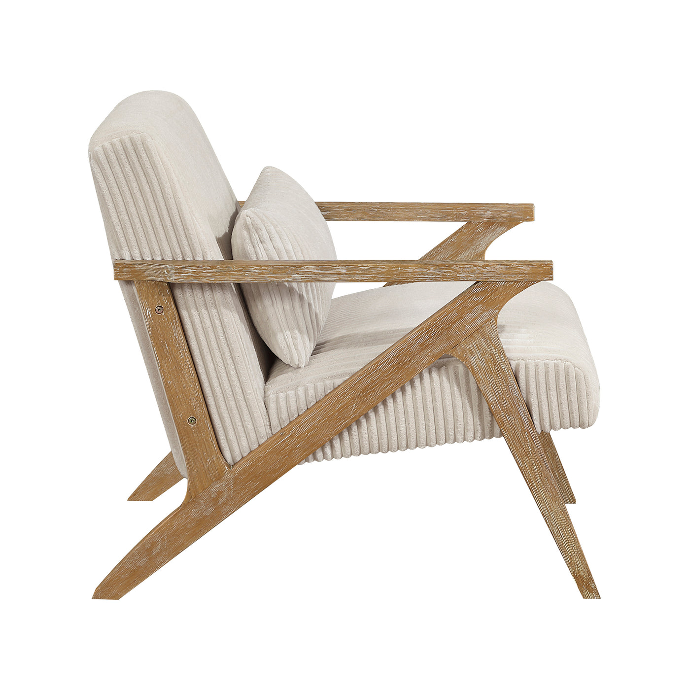 Add a touch of Scandinavian-inspired design and cozy comfort to your living space with this stylish accent chair. Crafted with a solid rubberwood frame in a rich brown finish, the chair features a striking, open-frame silhouette that exudes mid-century modern charm. The wide seat and large back cushion are upholstered in a soft, durable chenille...
