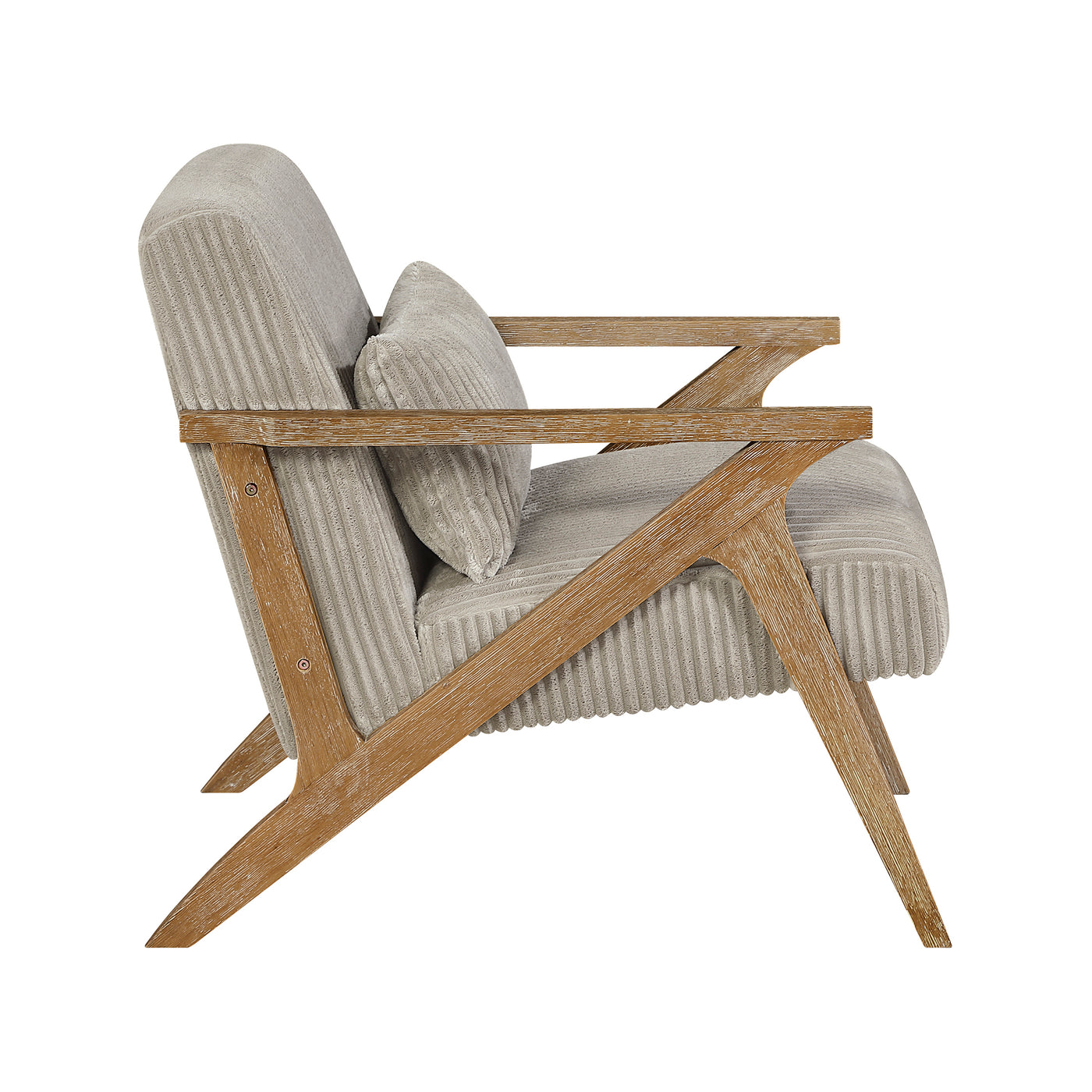 The frame of the seating collection recalls a time when simplicity of profile was the height of style. The streamlined design of the wood arms and legs is finished in an antique gray which serves to highlight the textured fabric covering. Features Solid rubberwood frame Foam padding over pocket coils Textured fabric upholstery Attached back ...