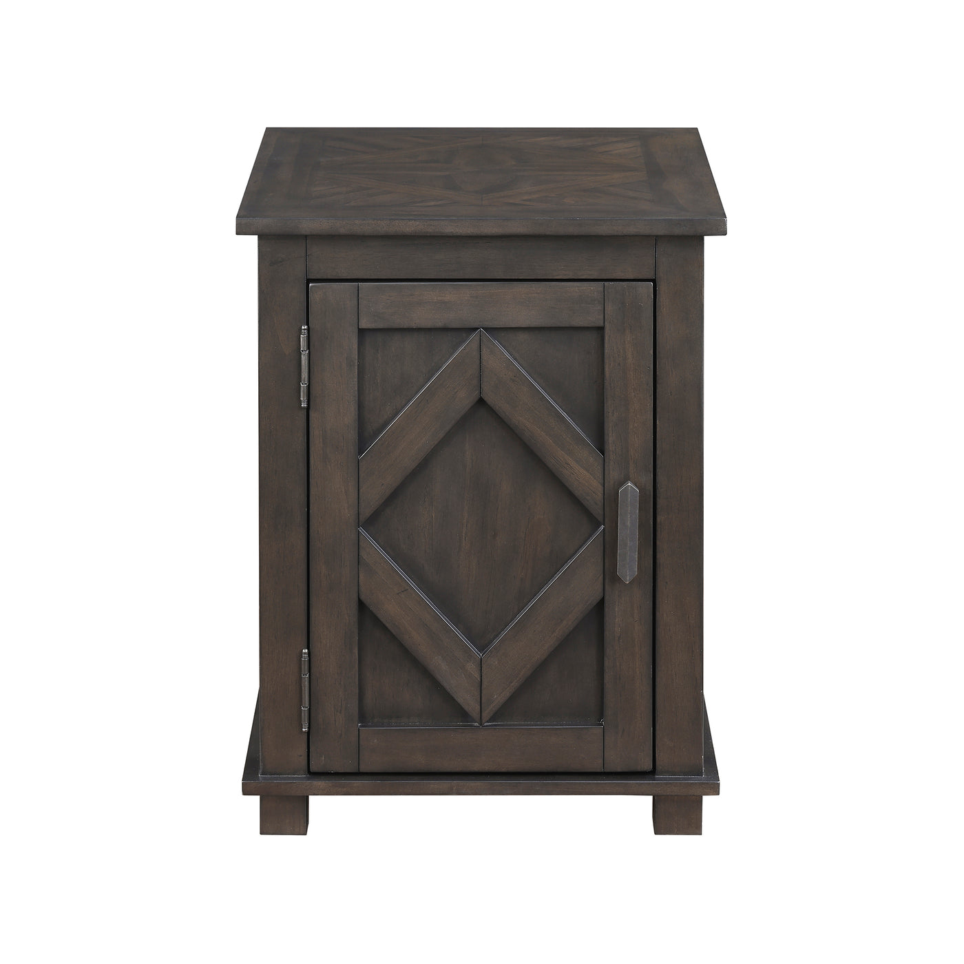 Complete your living room with this charming and practical farmhouse-style chairside table. Crafted from durable pine veneer, wood, and engineered wood with a rich brown finish, this table is the perfect companion for your favorite armchair or sofa. The single cabinet features an adjustable shelf, providing flexible and concealed storage for books, magazines, or remote controls, keeping your space tidy and organized. The barn-door inspired design on the front panel, along with a sleek gunmetal bar pull, adds a distinctive rustic-industrial touch. With its thoughtful design and no assembly required, this chairside table offers both stylish aesthetics and convenient functionality right out of the box.
