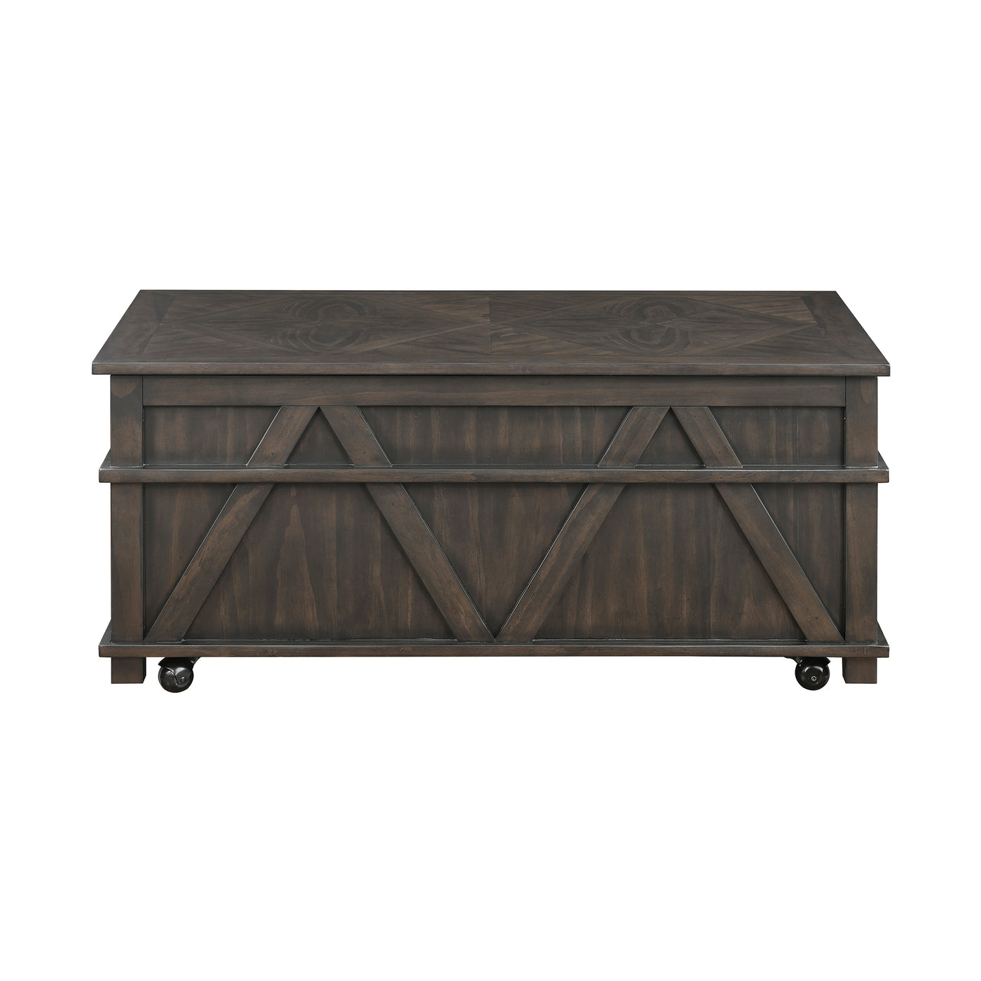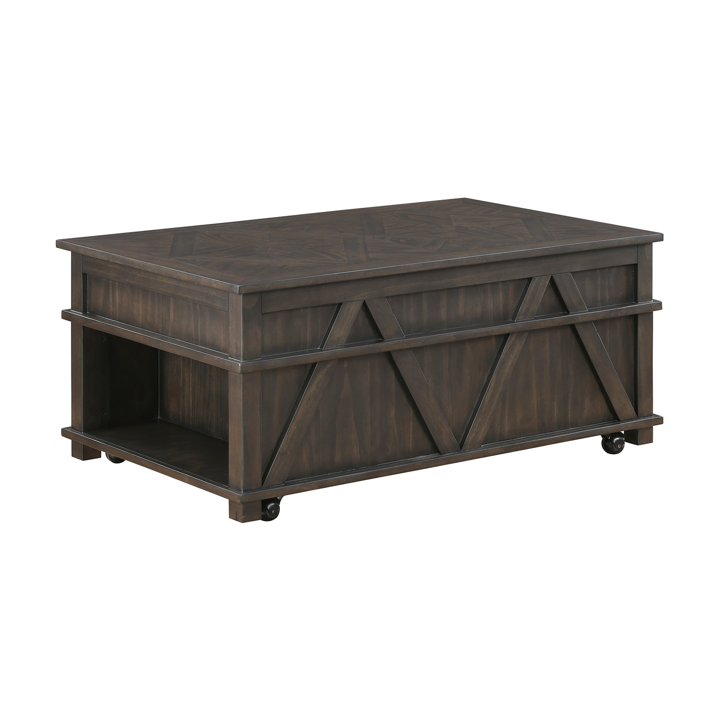 Bring a touch of farmhouse charm and smart functionality to your living room with this rustic lift-top cocktail table. Constructed from durable pine veneer, wood, and engineered wood with a rich brown finish, this coffee table features a unique lift-top design that effortlessly raises to create a convenient workspace or dining surface right at your sofa. The hidden storage compartment underneath the lift top is perfect for stashing blankets, board games, or electronics, helping you keep your space tidy. Supported by smooth-rolling casters, this versatile piece combines rugged style with practical mobility, making it an essential and eye-catching centerpiece for any casual living area.