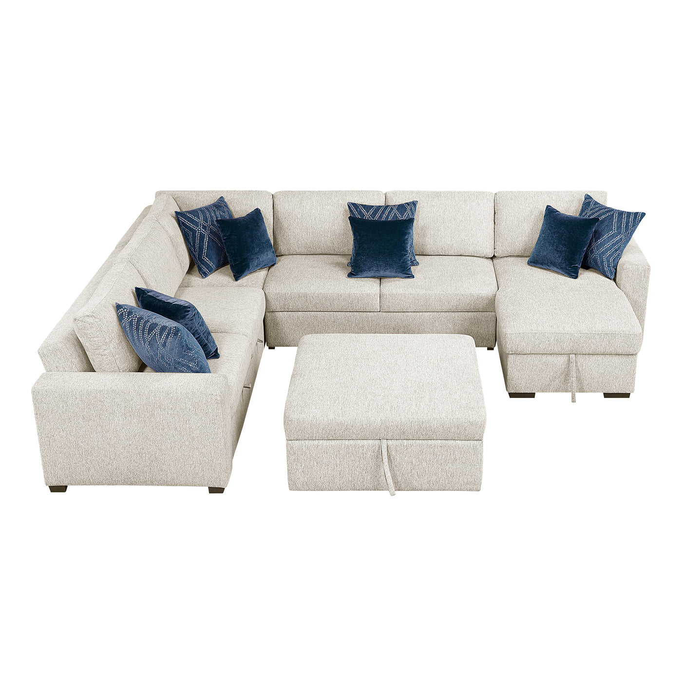 Textured Microfiber 5-Piece Sectional with Reversible Chaise, Pull-out Bed and Ottoman