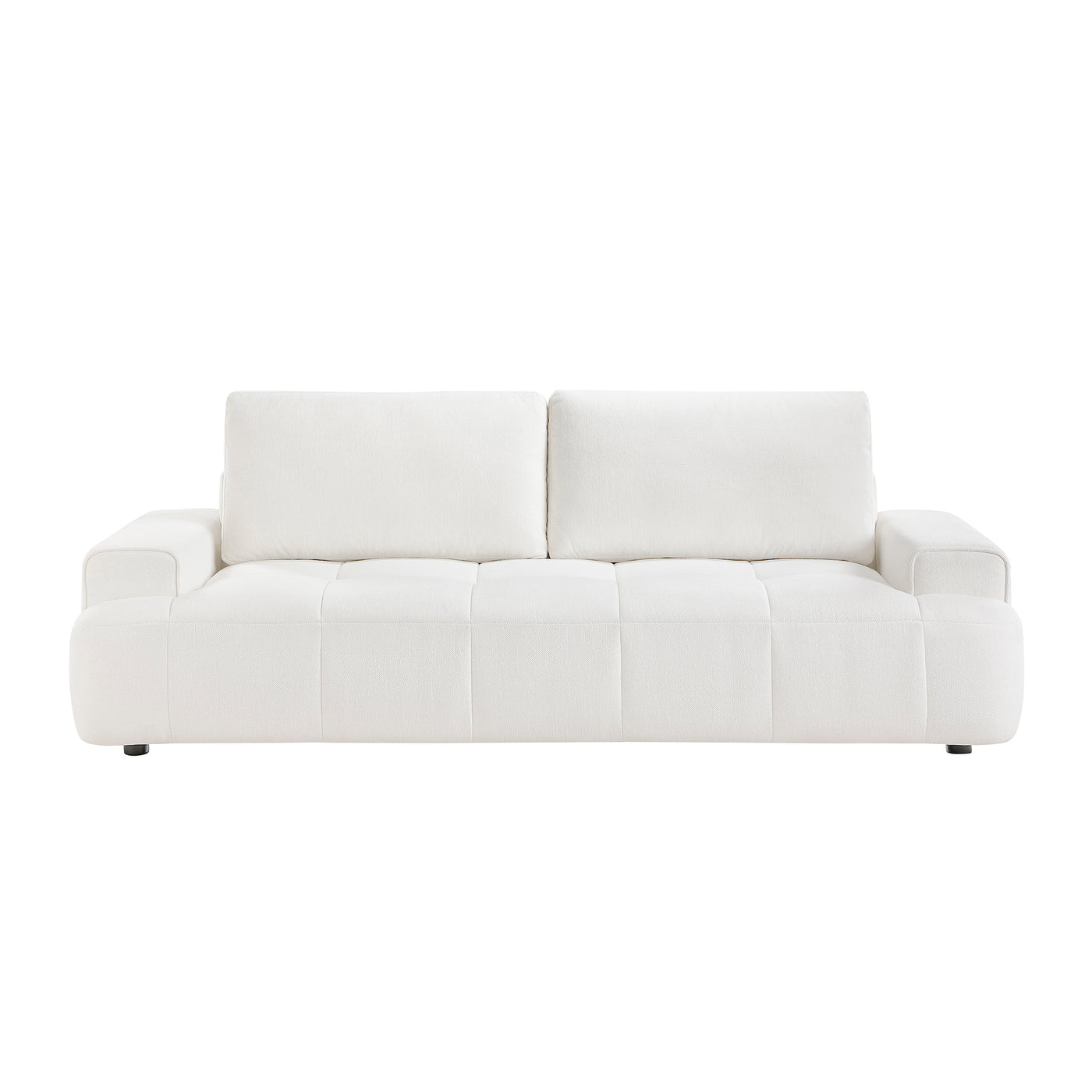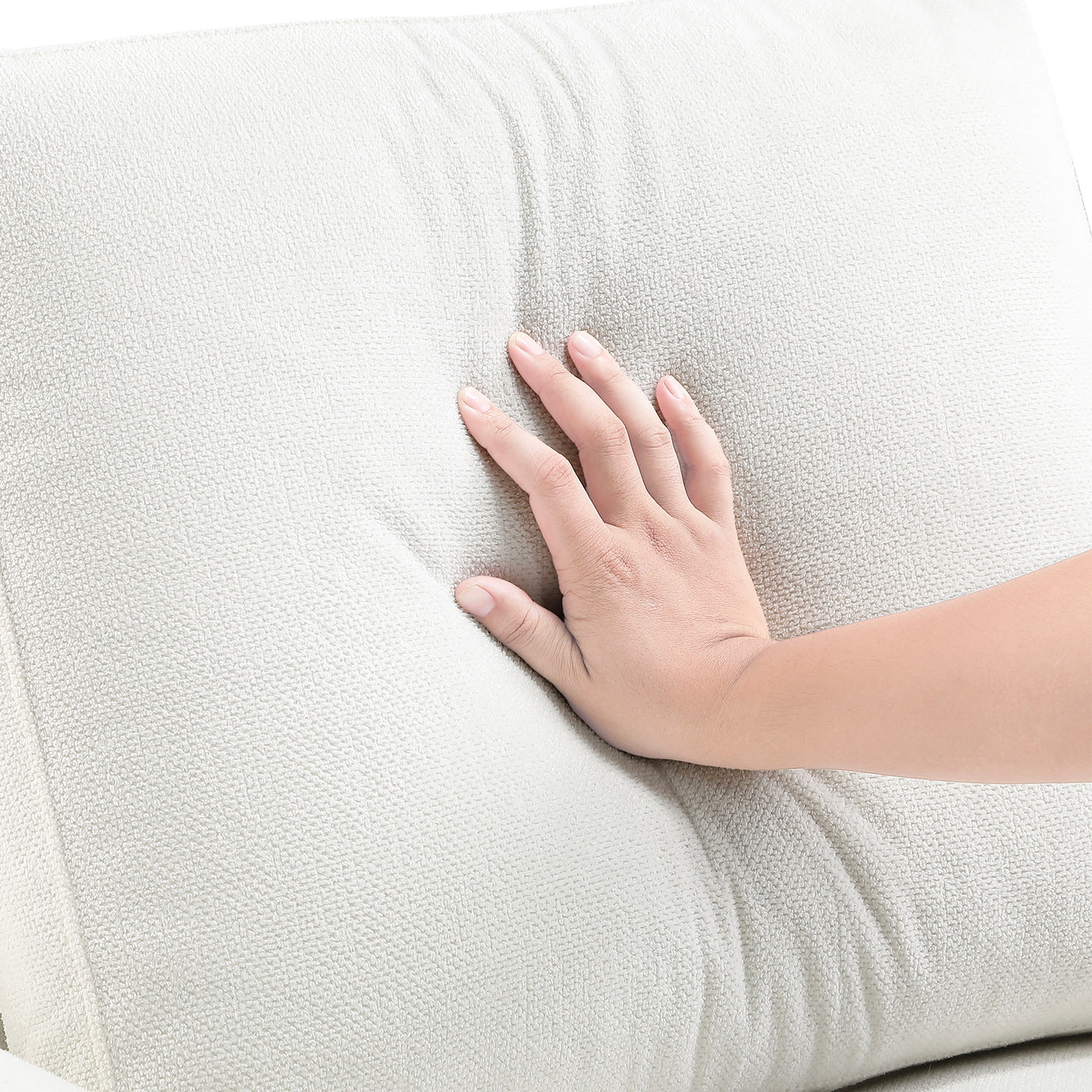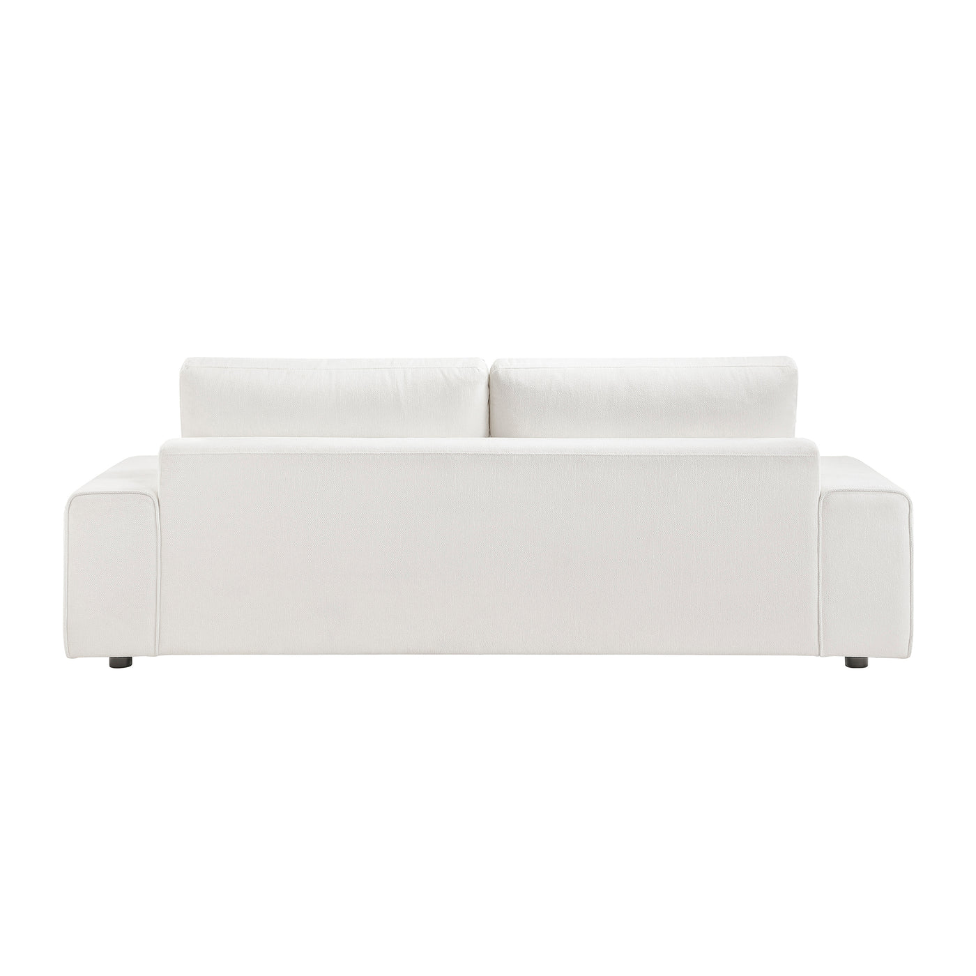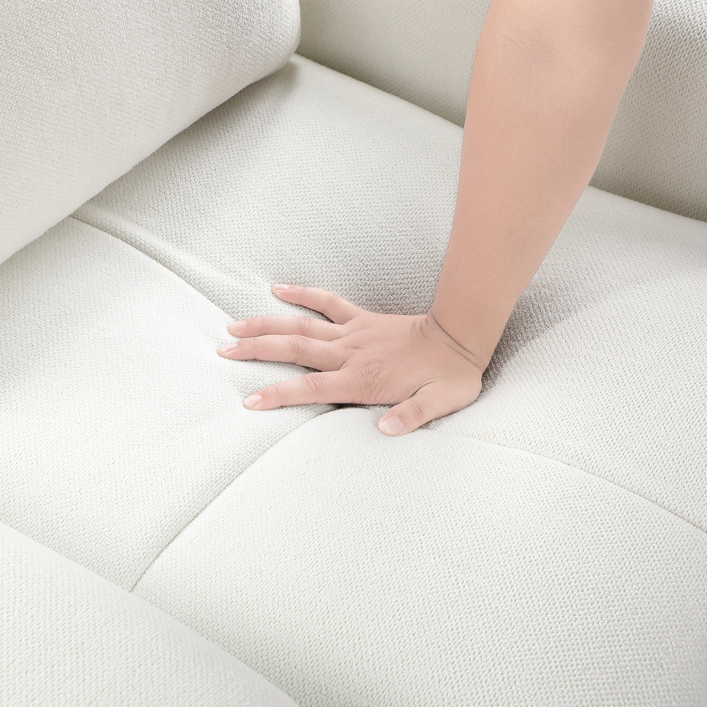 Elevate your living room comfort and style with this generously sized beige sofa, the perfect centerpiece for your home. Constructed with a robust frame of solid wood and durable plywood, this couch is engineered for stability and long-lasting support. The seating experience is incredibly plush yet resilient, featuring foam padding layered over supportive pocket coils that ensure superior comfort and shape retention. Upholstered in soft, textured chenille fabric and elevated by exposed black faux wood feet, this sofa offers a clean, transitional aesthetic that seamlessly complements diverse decor. With features like reversible back cushions and removable cushion covers, this seating provides both luxurious lounging space and simplified maintenance for the whole family.