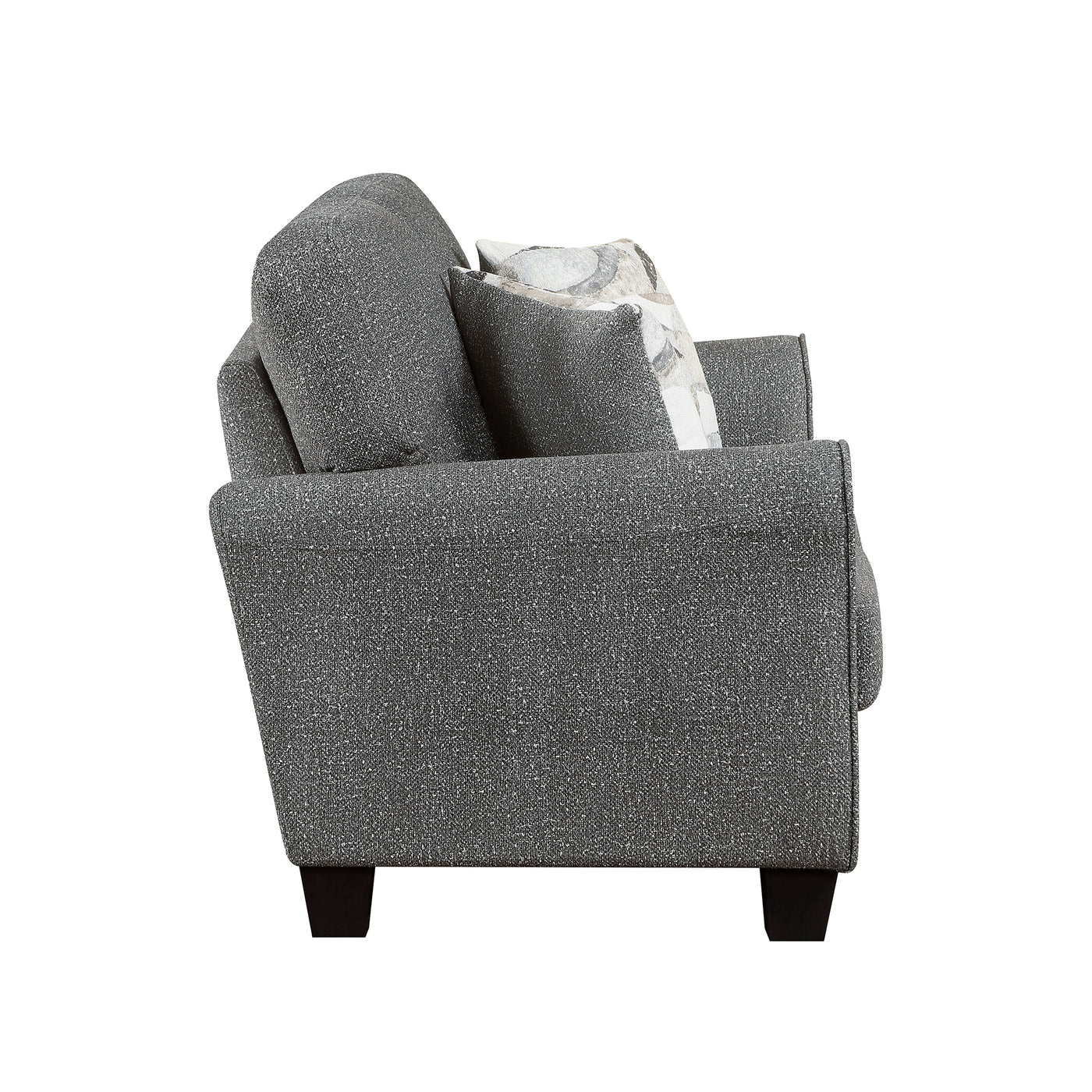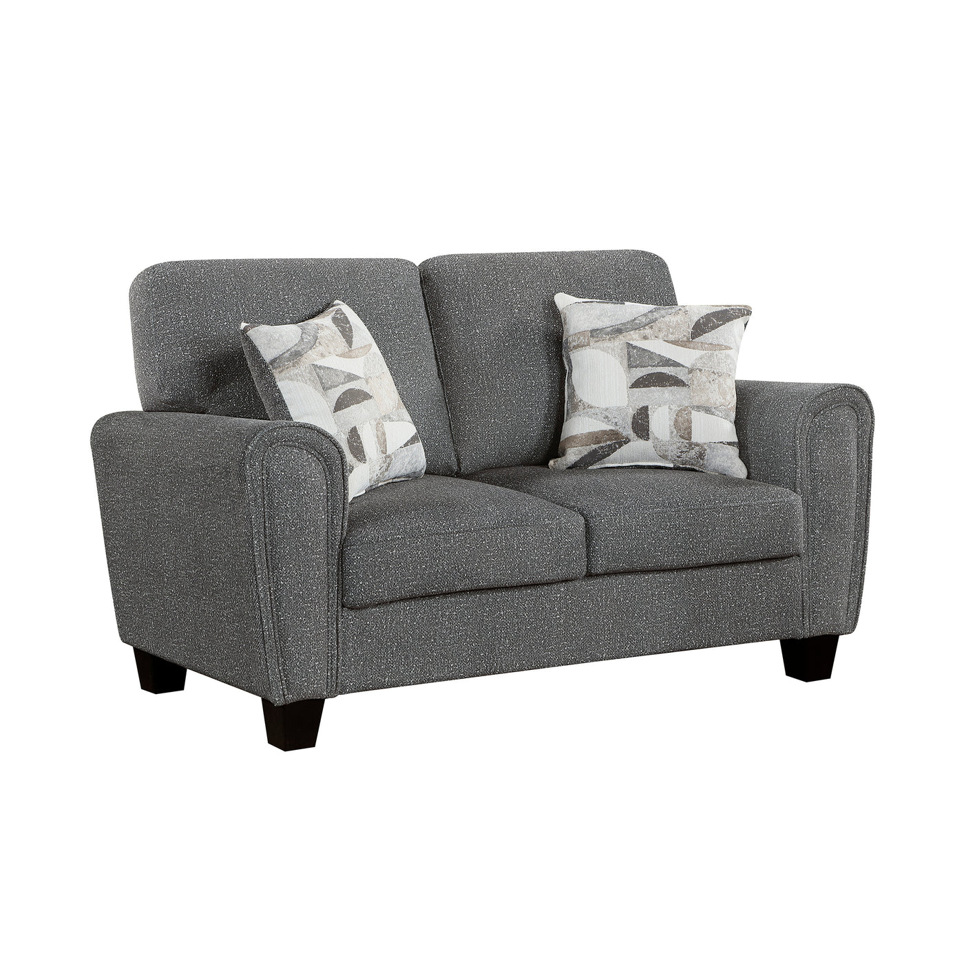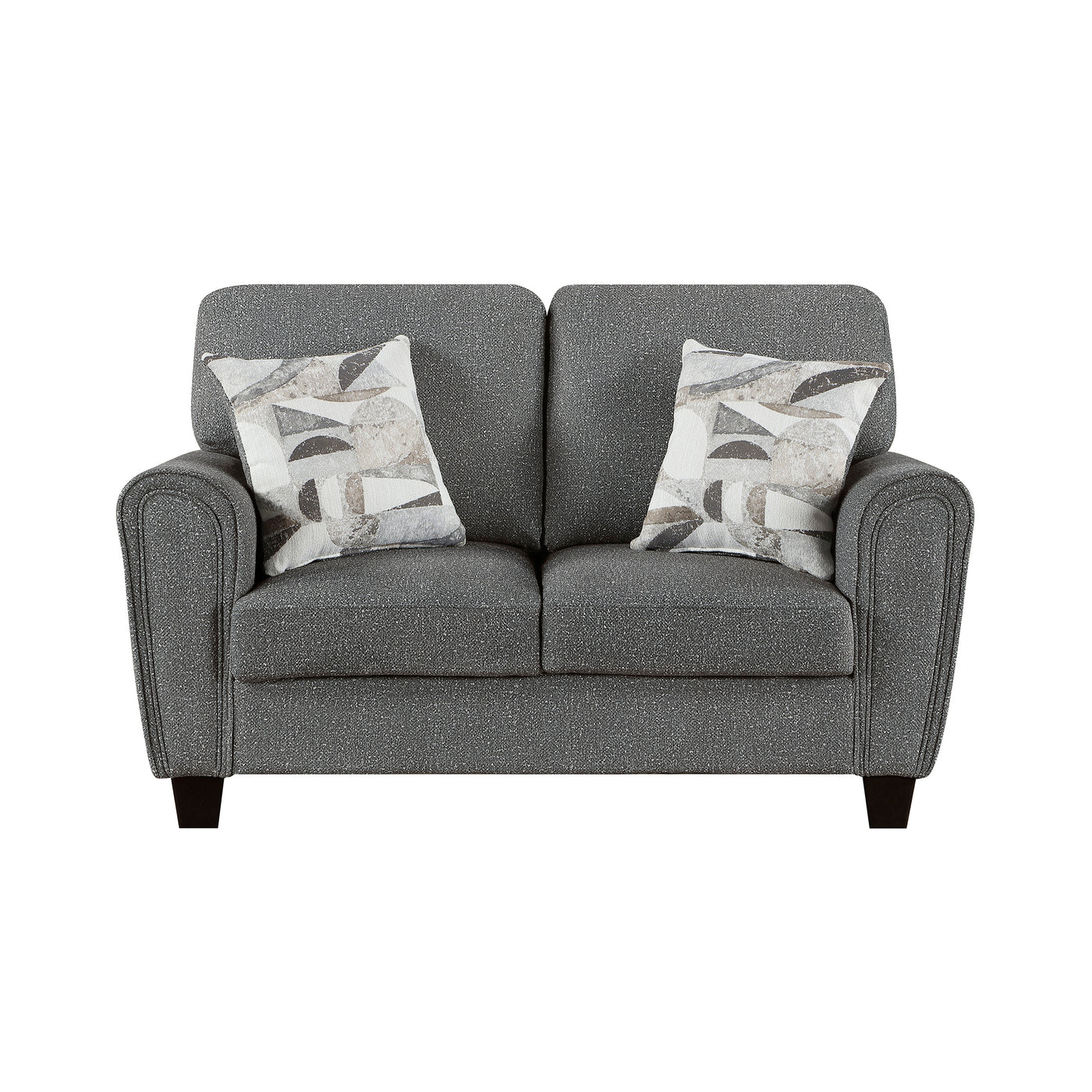 Create a cozy and inviting seating area with this stylish and compact loveseat, perfect for smaller living rooms, apartments, or reading nooks. Constructed with a sturdy plywood frame, this loveseat sofa offers a durable and reliable foundation for daily use, with a weight capacity of 300lbs per seat. The plush foam padding over pocket coils provides exceptional comfort, while the soft chenille fabric upholstery adds a touch of cozy elegance. This loveseat is designed for easy maintenance, featuring reversible back cushions with removable covers. Complete with two matching decorative pillows, this sofa combines clean, modern lines with practical features, making it a perfect blend of style and comfort for your home. The collection offered in gray and dark gray color.