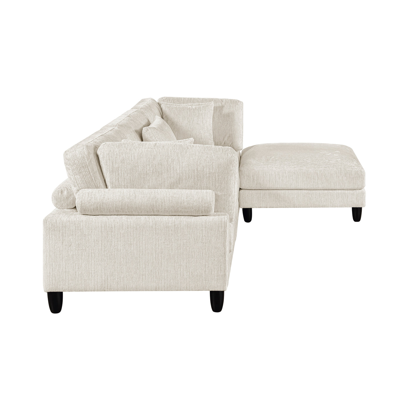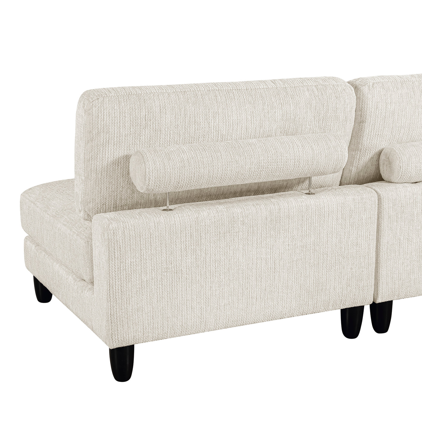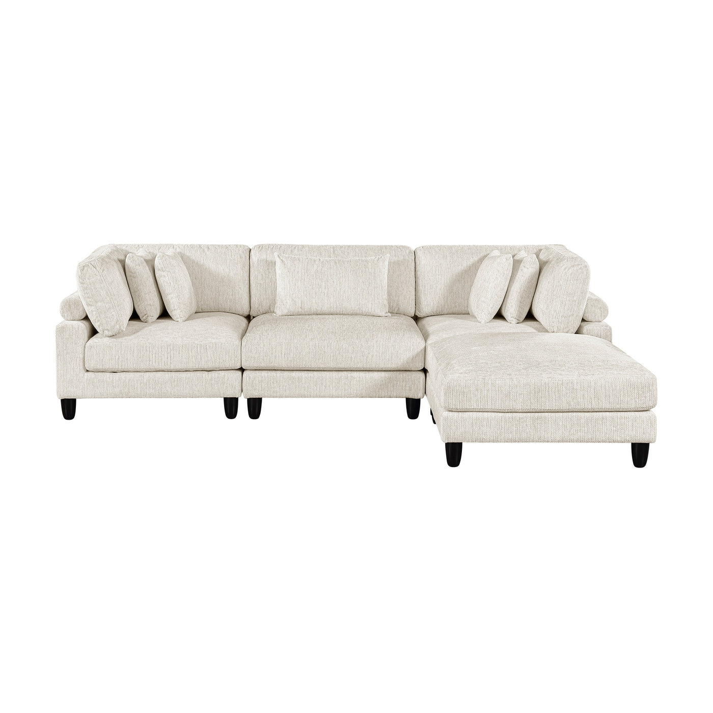 Design your ideal living space with this versatile and comfortable 4-piece modular sectional sofa with an ottoman. This set includes two corner seats, one armless chair, and one ottoman, allowing you to arrange them to perfectly fit your room's layout. Built on a sturdy solid wood and plywood frame, each piece is engineered for durability and reliable support, with a weight capacity of 300lbs per seat. The plush foam padding over pocket coils and soft textured microfiber fabric upholstery provide an exceptionally comfortable and resilient seating experience. Designed for easy maintenance, the reversible cushions have convenient zipper covers for simple cleaning. Complete with five coordinating decorative pillows, this sectional is the perfect blend of modern style, practical functionality, and luxurious comfort.